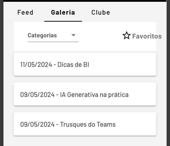 Nossa plataforma organiza os conteúdos em categorias bem definidas, facilitando a navegação e a busca no feed.